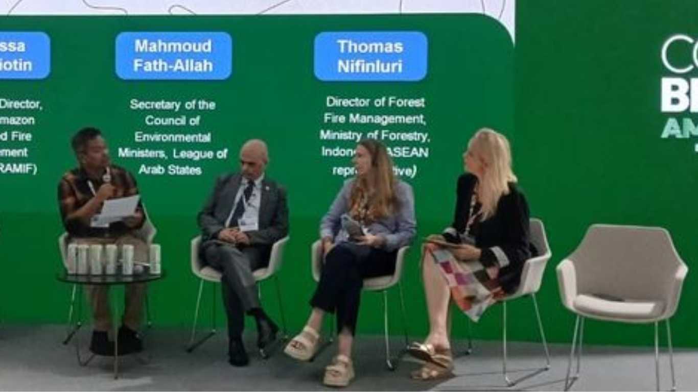 Thomas Nifinluri, Direktur Pengendalian Kebakaran Hutan dan Lahan, Dalam Sesi Diskusi FAO DI COP30 (Foto : Kemenhut)