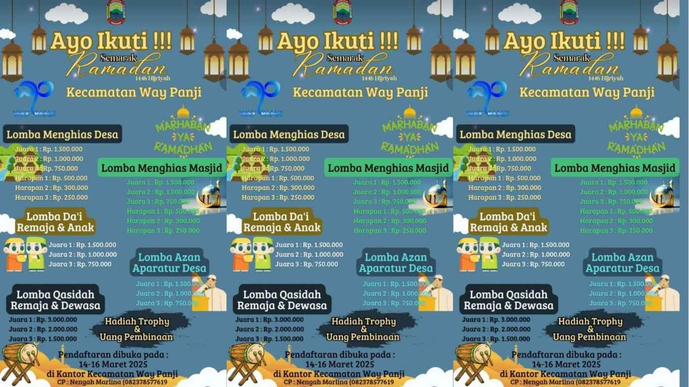 Camat Way Panji, Luthfi Martadinata, menyampaikan bahwa tema besar pada bulan suci Ramadhan 1446 Hijriah adalah Semarak Ramadhan dan Memperluas Syiar keagamaan. Untuk itu, akan digelar berbagai cabang perlombaan yang melibatkan peserta dari Aparatur Desa, Masjid, Pesantren dan masyarakat umum Se Kecamatan Way Panji.