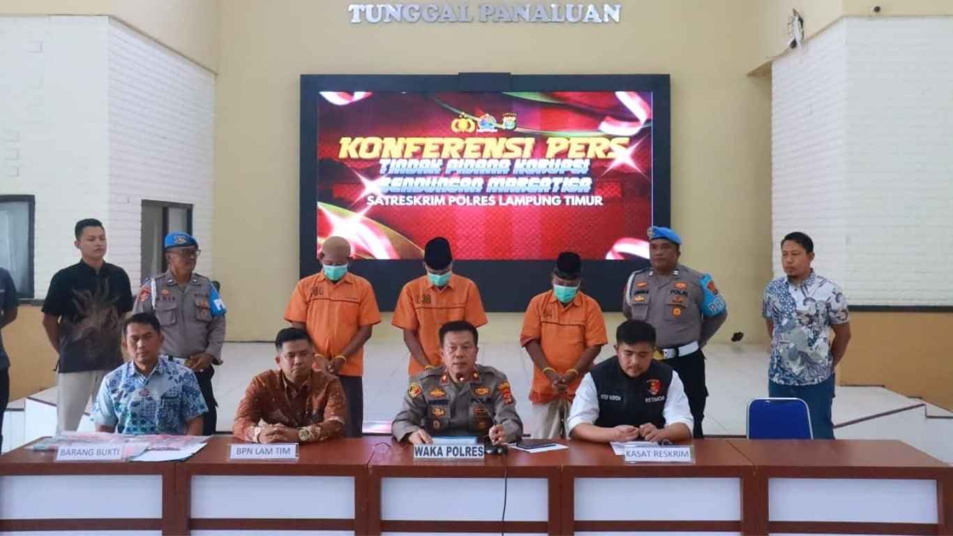 ranjana.id Pihak Kepolisian Satuan Reskrim Polres Lampung Timur, mengamankan 3 tersangka dugaan tindak pidana korupsi Bendungan Marga Tiga.
